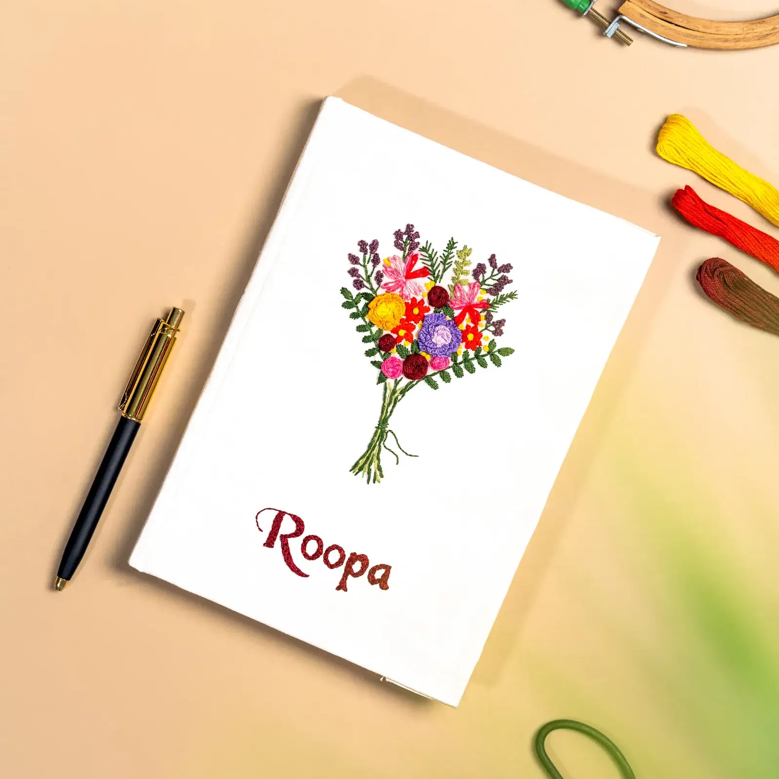 The embroidery is done with care. No machines, no shortcuts. Just thread and intention. The inner pages are clean, smooth, and ready to meet your words.